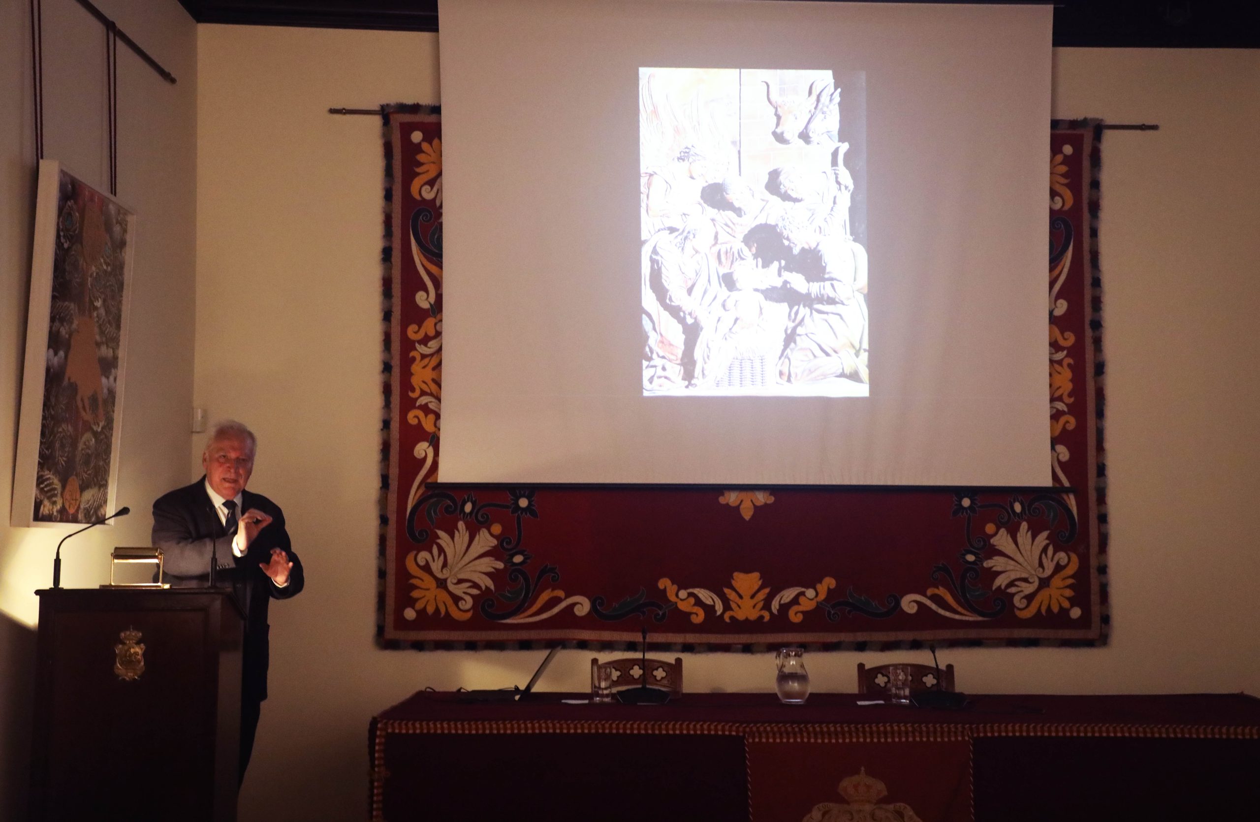 El Excmo. Sr. D. Juan Miguel González Gómez, Presidente de la Real Academia de Bellas Artes de Santa Isabel de Hungría pronunció la conferencia bajo el título: “El Belén en Sevilla: escultura, iconografía y devoción popular”. Con dicha intervención quedaba clausurada esta última edición del Ciclo de Conferencias organizado por la Real Corporación y la Real Academia de Bellas Artes que, en esta ocasión, ha versado sobre “La Navidad en Sevilla”.
