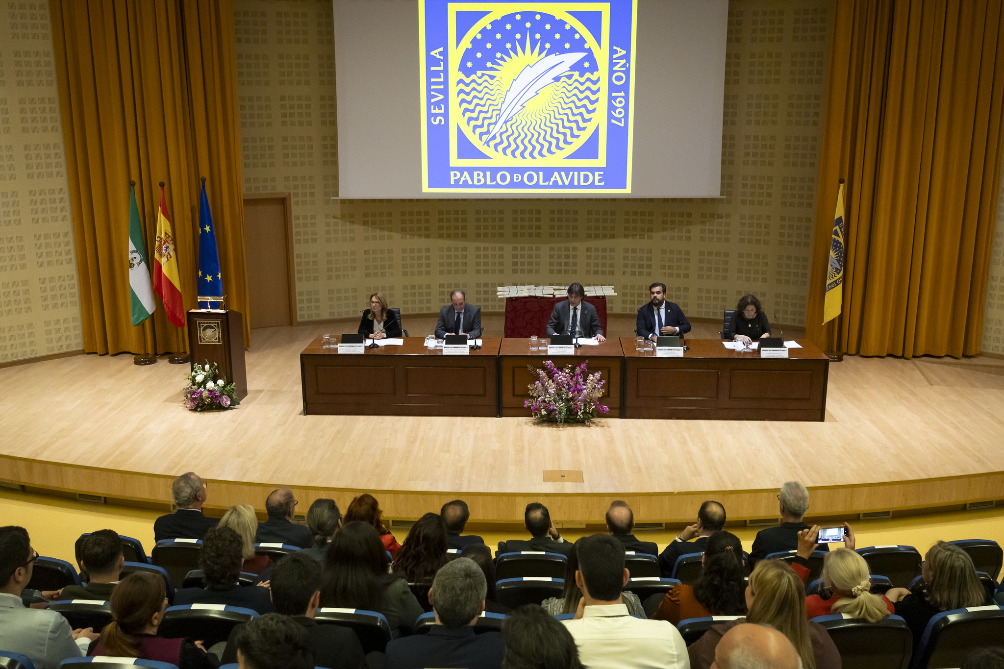 El Paraninfo de la Universidad Pablo de Olavide (UPO) ha sido el escenario de la entrega de los Premios de la Real Maestranza de Caballería de Sevilla, un reconocimiento a la excelencia académica del alumnado con los mejores expedientes de grado. En esta ocasión, se han premiado los méritos de los cursos 2020-2021, 2022-2023 y 2023-2024. La ceremonia estuvo presidida por el Excmo. Sr. D. Francisco Oliva Blázquez, Rector Magnífico de la Universidad Pablo de Olavide, y por el Ilmo. Sr. D. Joaquín Guajardo-Fajardo y Carmona, fiscal de esta Real Corporación, que estuvo acompañado por el Ilmo. Sr. D. Salvador Linares Medina, Diputado de Plaza de la Real Maestranza. Junto a ellos, estuvieron presentes representantes institucionales de la UPO y la Real Maestranza. Entre ellos, el Excmo. Sr. D. Iván Pestaña Ruiz, presidente del Consejo Social, y las Excmas. Sras. Dña. Laura López de la Cruz y Dña. María del Pilar Moreno Navarro, vicerrectoras del centro.